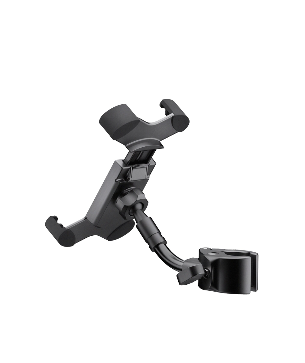 Sa ovim univerzalnim držačem, vaš pametni telefon je uvek na dohvat ruke. Držač je pogodan za sve ravne uređaje širine od 55 do 85 mm i visine od 130 do 180 mm. Dubina od 15 mm je takođe pogodna za pametne telefone sa debelim poklopcem ili futrolom. Rukovanje je brzo i jednostavno. Dugme za brzo otpuštanje na poleđini sa mehanizmom za zaključavanje otključava gumirane stezaljke i pametni telefon se može lako ukloniti. Zahvaljujući kugličnom zglobu, držač se može naginjati gore-dole i rotirati za 360°. Fleksibilna potporna ruka pruža dodatno individualno pozicioniranje. Čvrst stezni element sa korisnički jednostavnom krilnom navrtkom omogućava brzu montažu na bilo koju cev prečnika od 10 do 30 mm.
