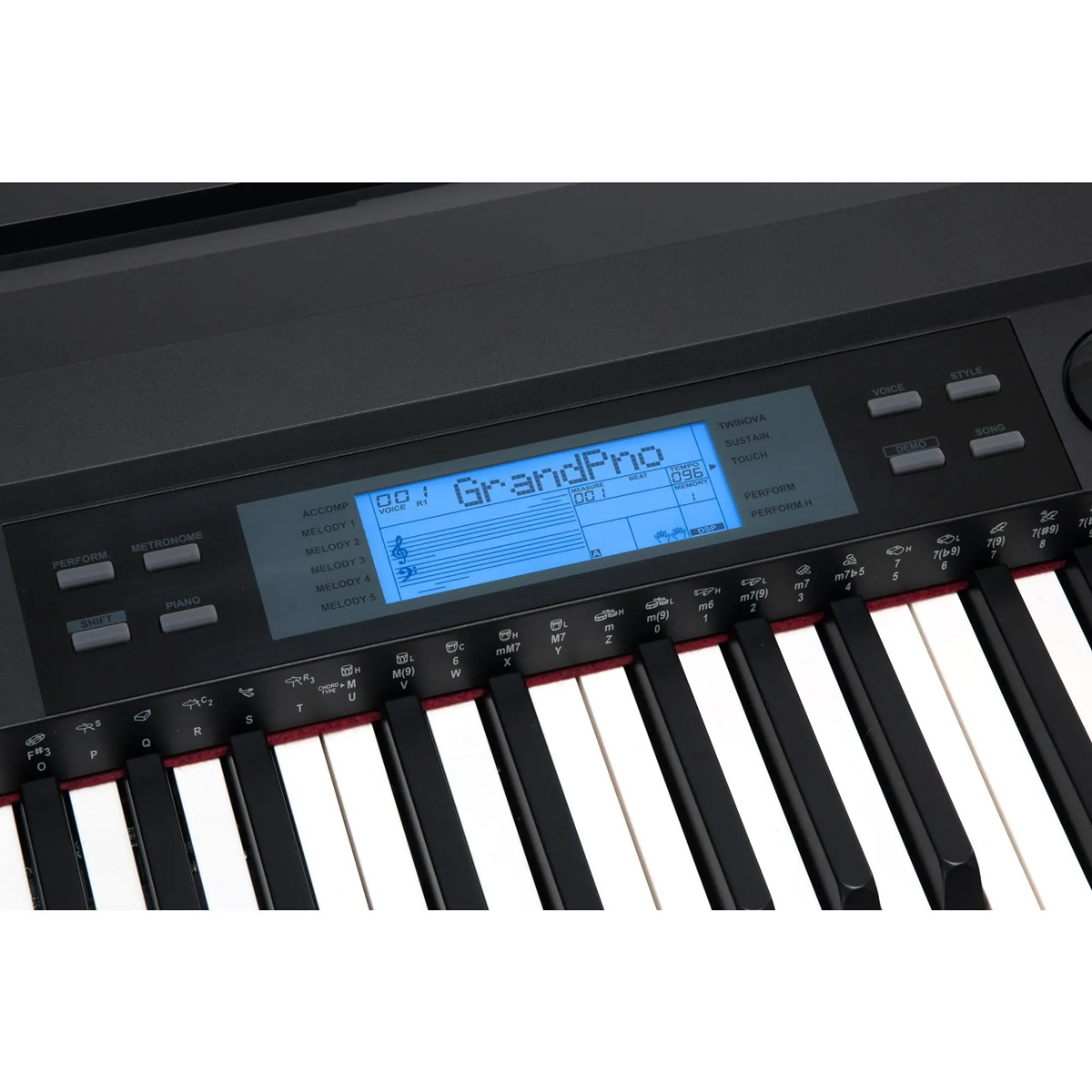 88 true hammer keys with touch sensitivity, max. polyphony: 128, 600 voices 120 songs, including 5 user songs, 230 styles incl. 10 user styles